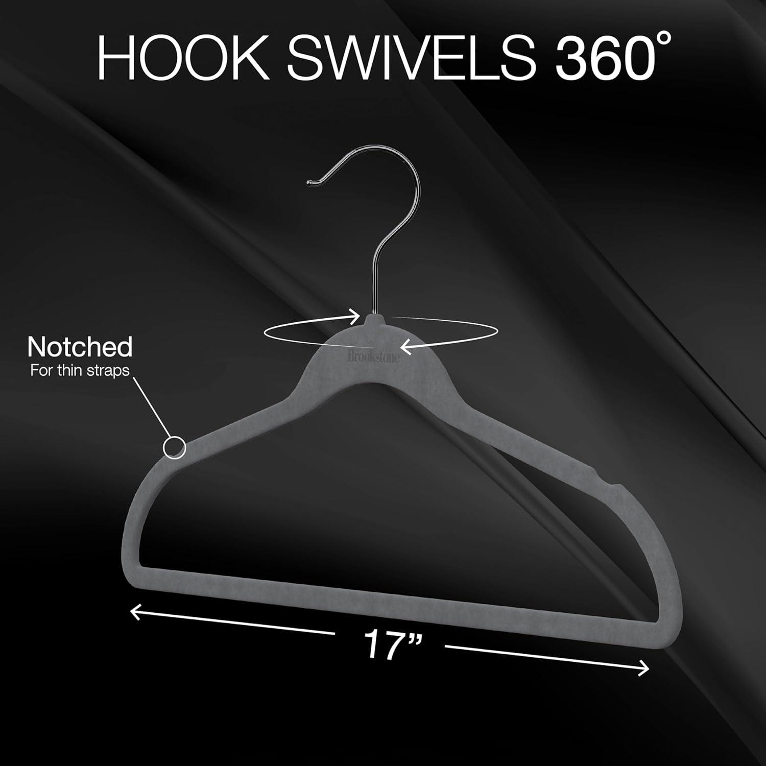 imageBROOKSTONE 50 Pack Velvet Hangers NonSlip 360 Swivel Hook Lightweight ampamp Slim Strong ampamp Durable Space Saving Design Heavy Duty Wont Stain FabricGray