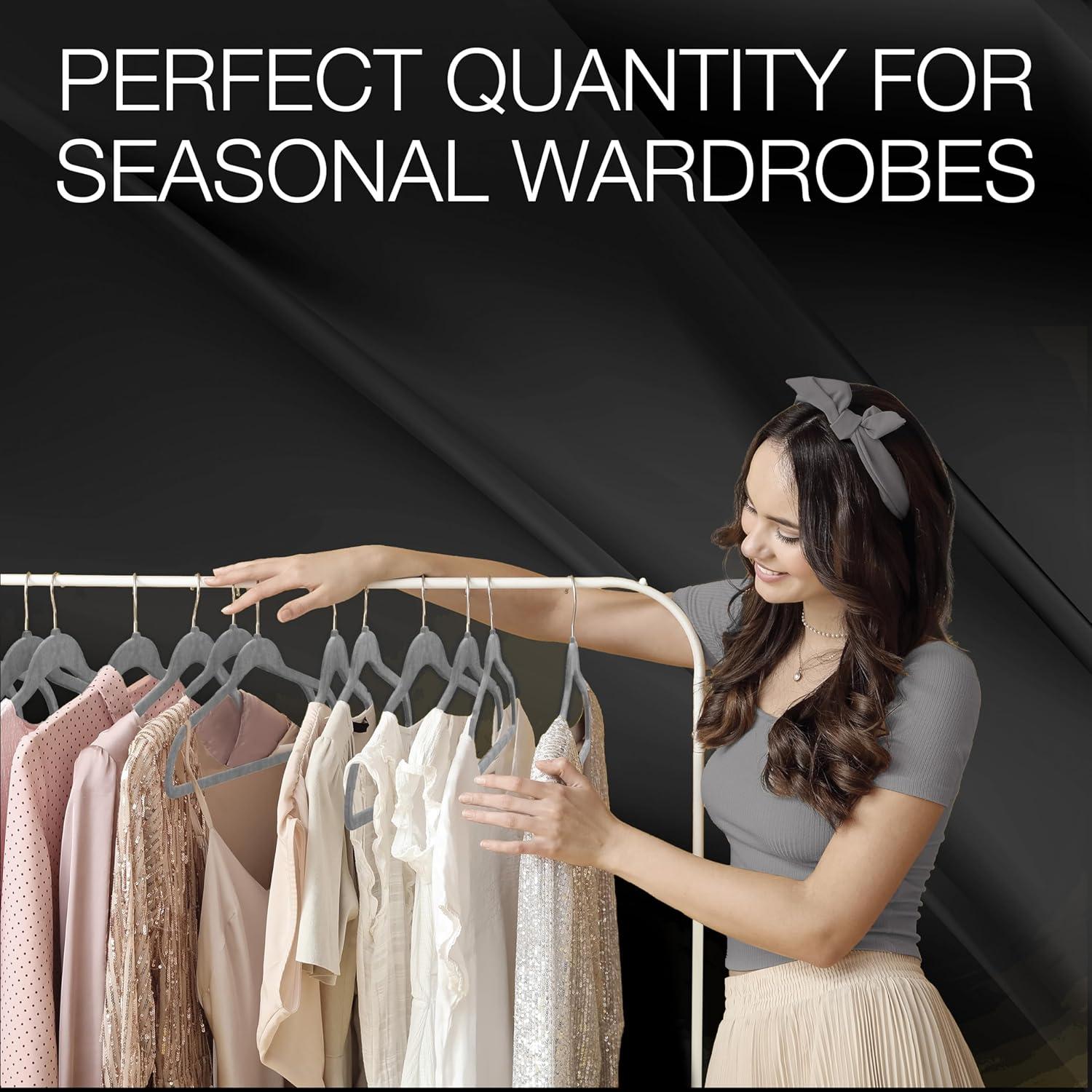 BROOKSTONE, [50 Pack] Velvet Hangers, [Non-Slip] 360° Swivel Hook, Lightweight & Slim, Strong & Durable, Space Saving Design, Heavy Duty, Won’t Stain Fabric(Gray)