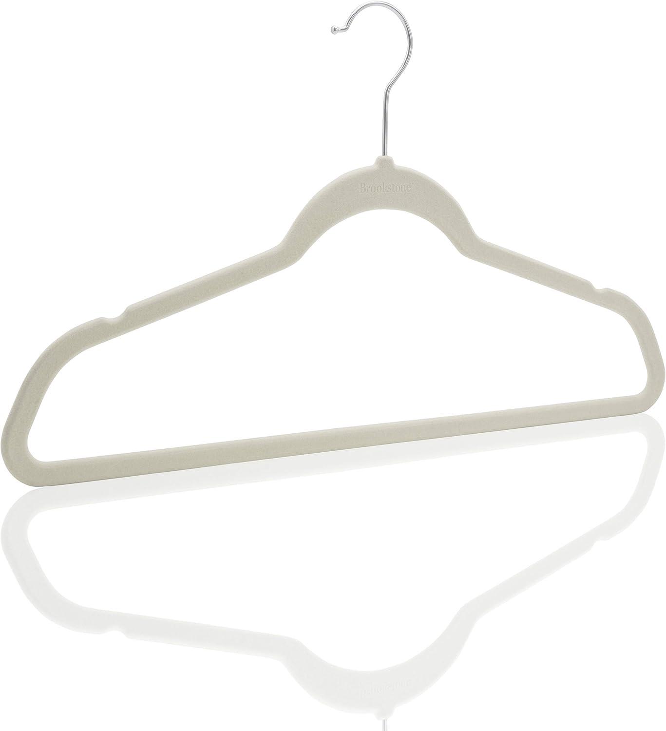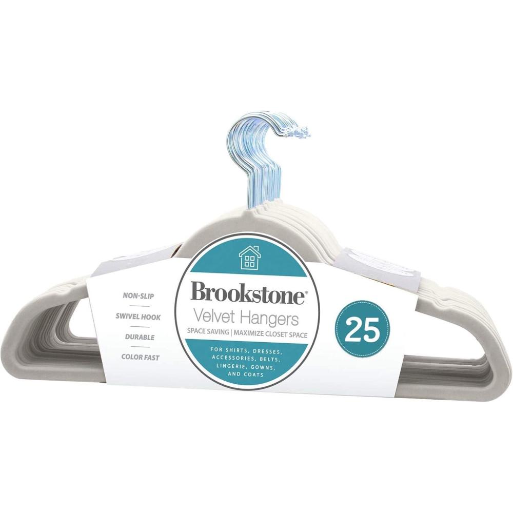 Brookstone BKH1126 Non-Slip, 360° Swivel Hook, Lightweight & Slim, Strong & Durable, Space Saving Design, Heavy Duty, Won’t Stain Fabric, 25 Pack Velvet Hangers/Ivory, 25 Count