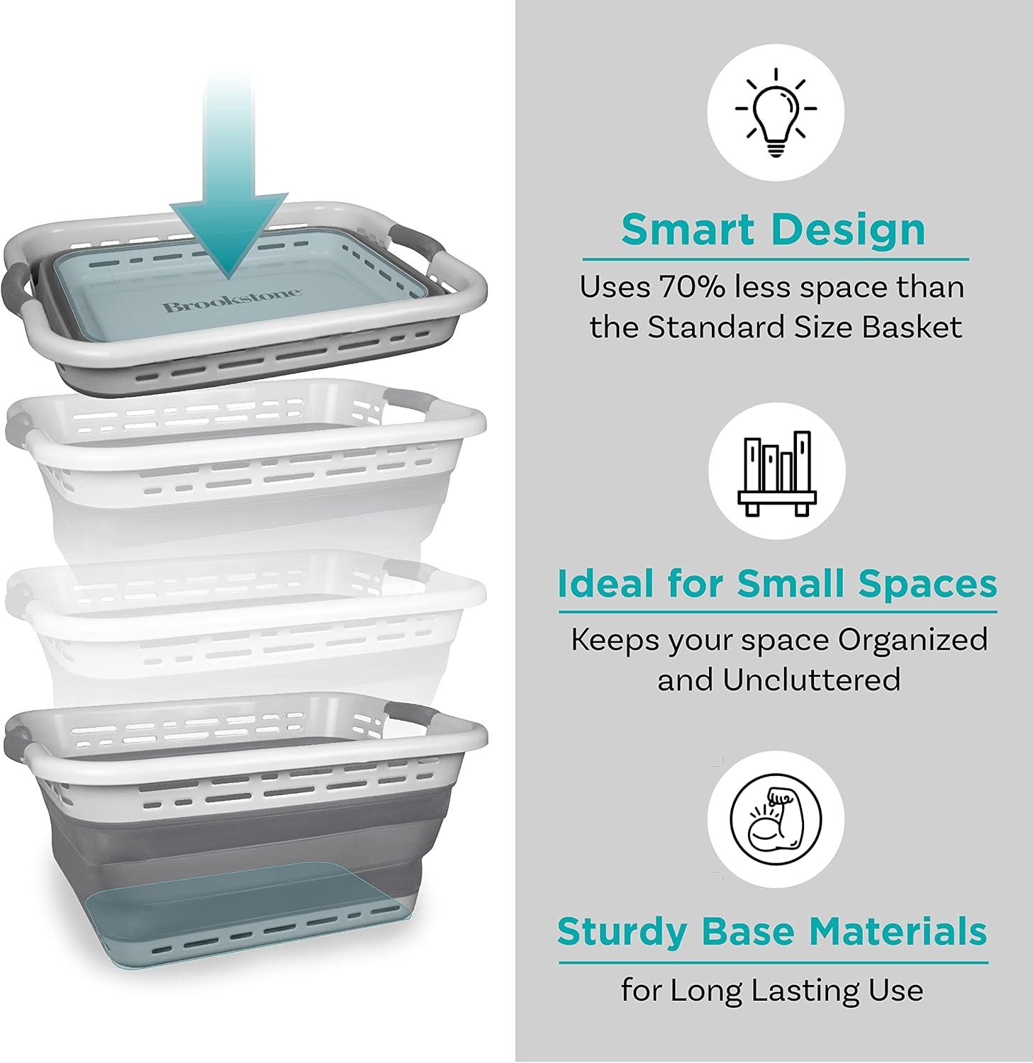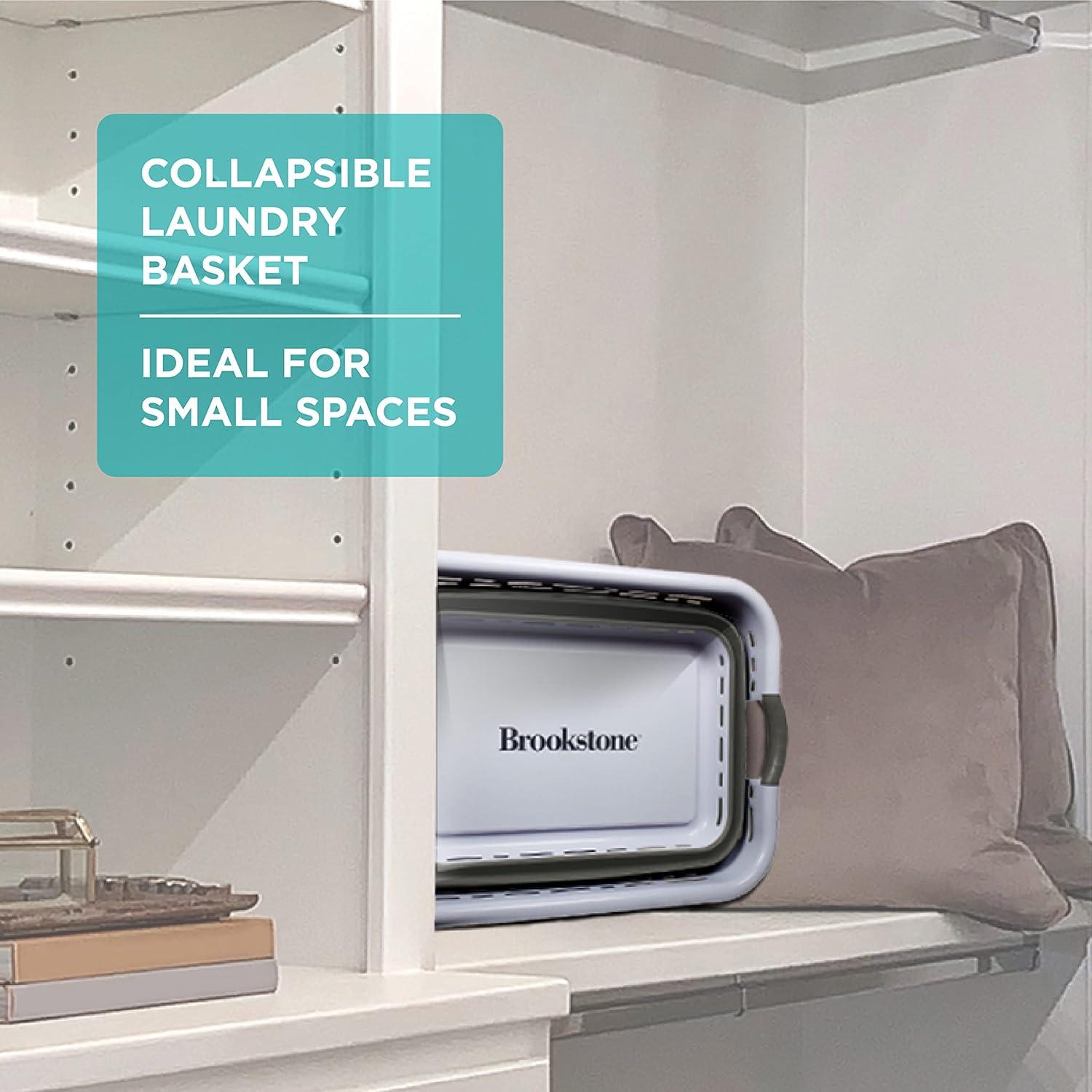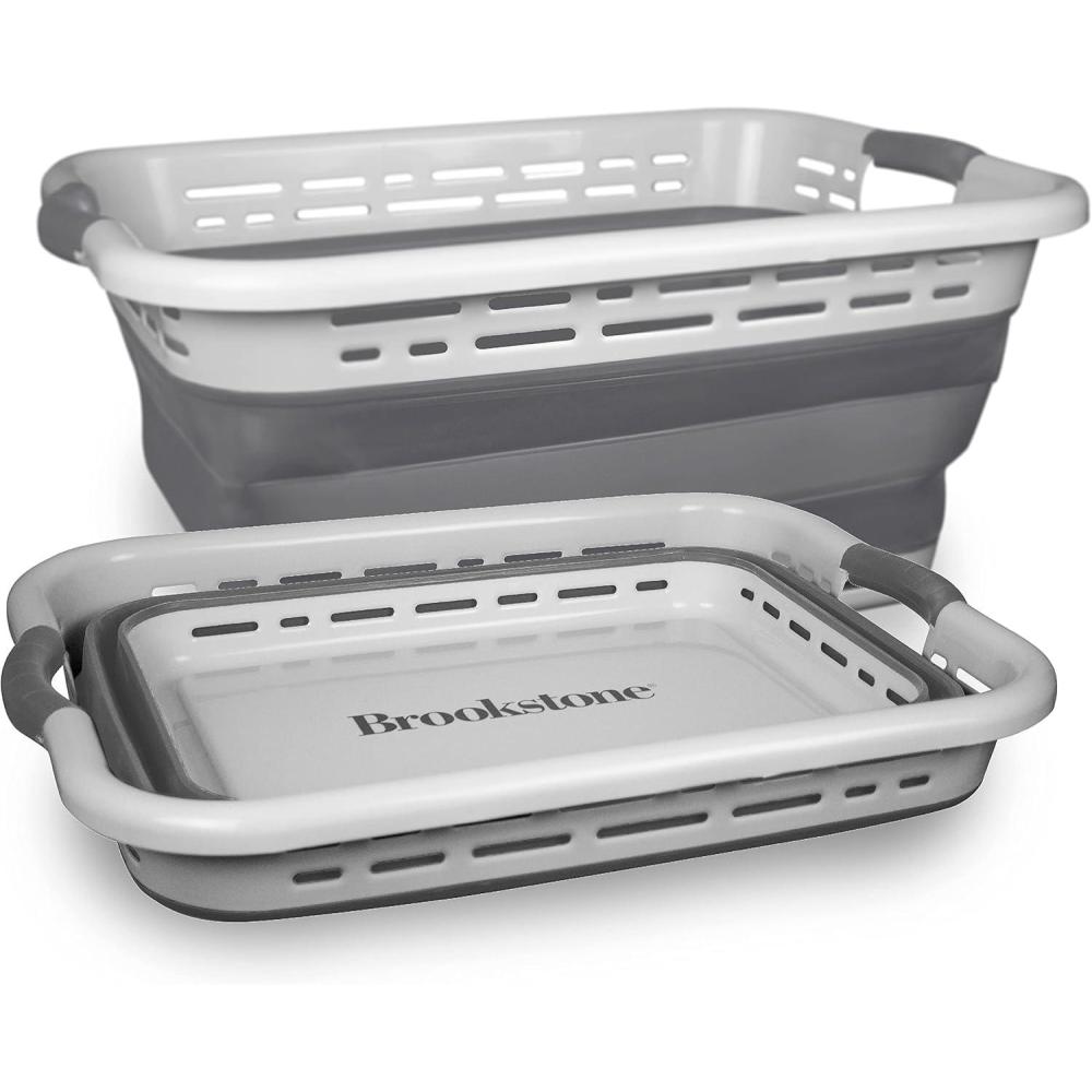 COLLAPSIBLE LAUNDRY BASKET – Brookstone’s collapsible laundry basket combines both functionality and style. This space saving laundry basket simply folds flat when not in use for easy storage. Ideal for small spaces in your home, this laundry basket keeps your space organized and uncluttered.