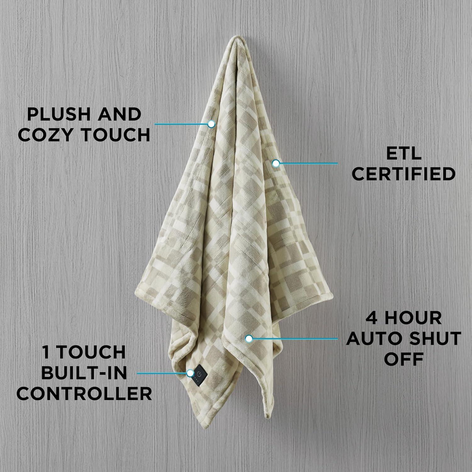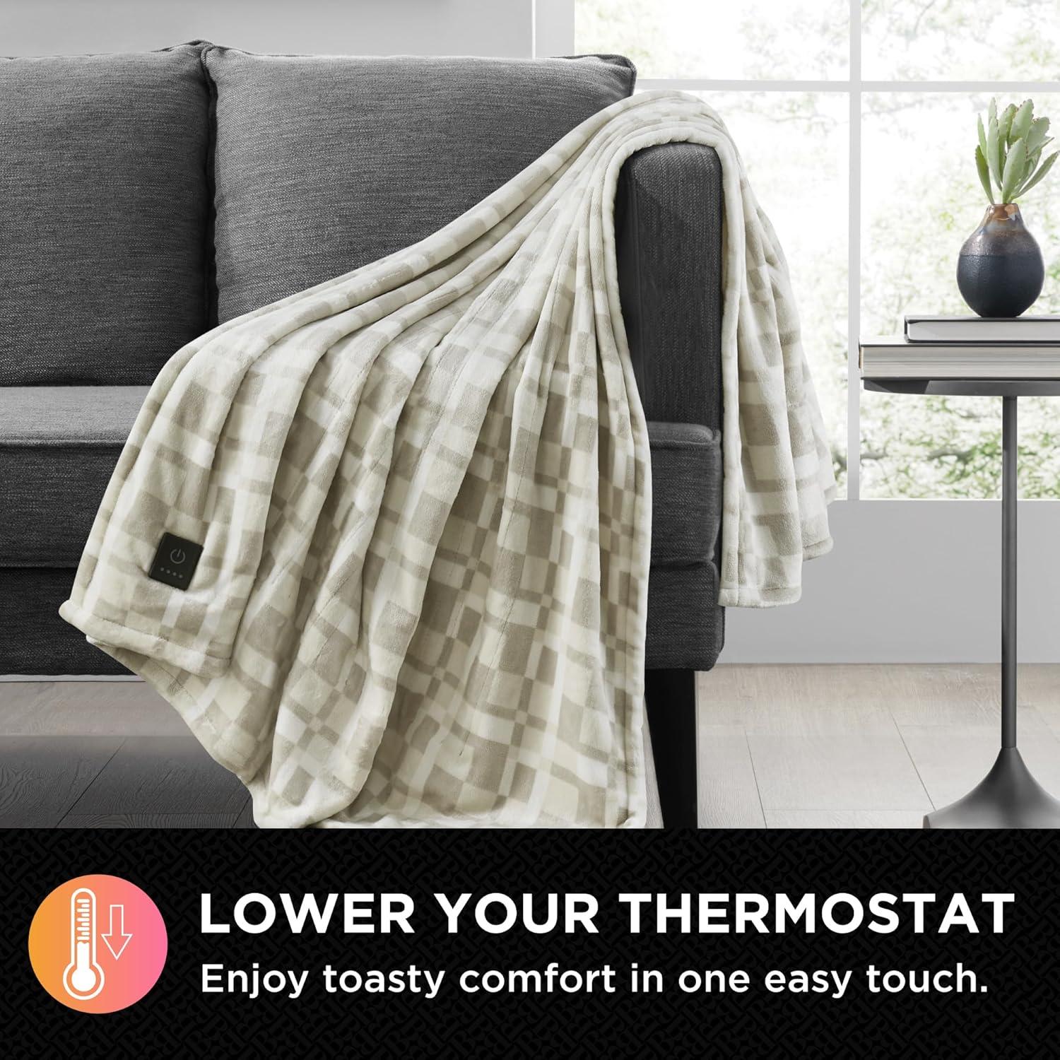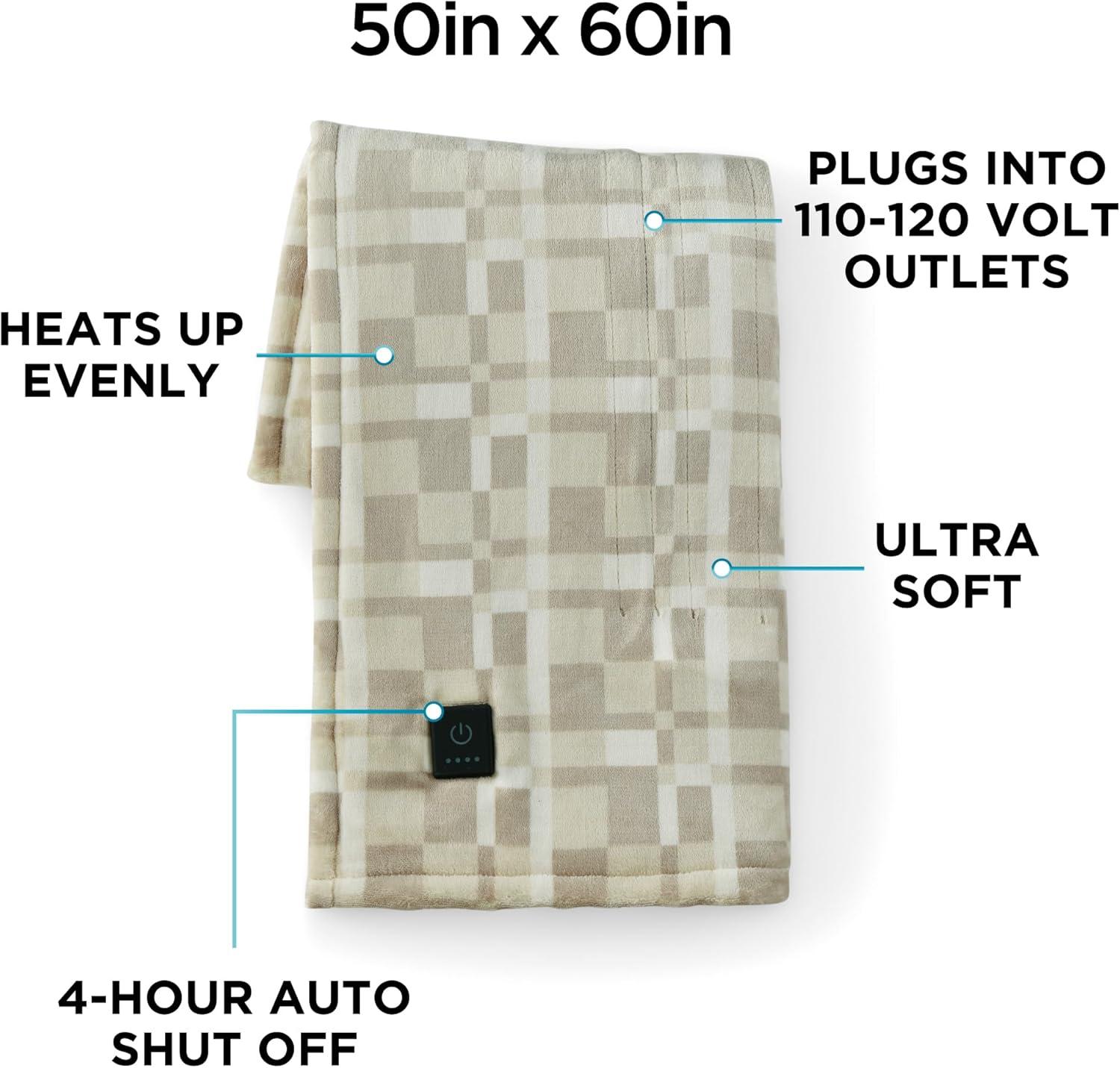 Brookstone Heated Throw Blanket - Heat Blankets Electric - Faux Fur Heated Throw Blanket- 4 Heat Settings, 4-Hour Auto Shut Off, 100% Polyester, 50"x60" - Dark Charcoal Solid(Chic Plaid)
