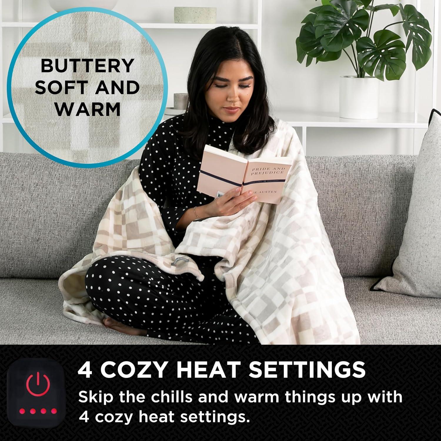 Brookstone Heated Throw Blanket – Heat Blankets Electric – Faux Fur Heated Throw Blanket- 4 Heat Settings, 4-Hour Auto Shut Off, 100% Polyester, 50″x60″ – Dark Charcoal Solid(Chic Plaid)
