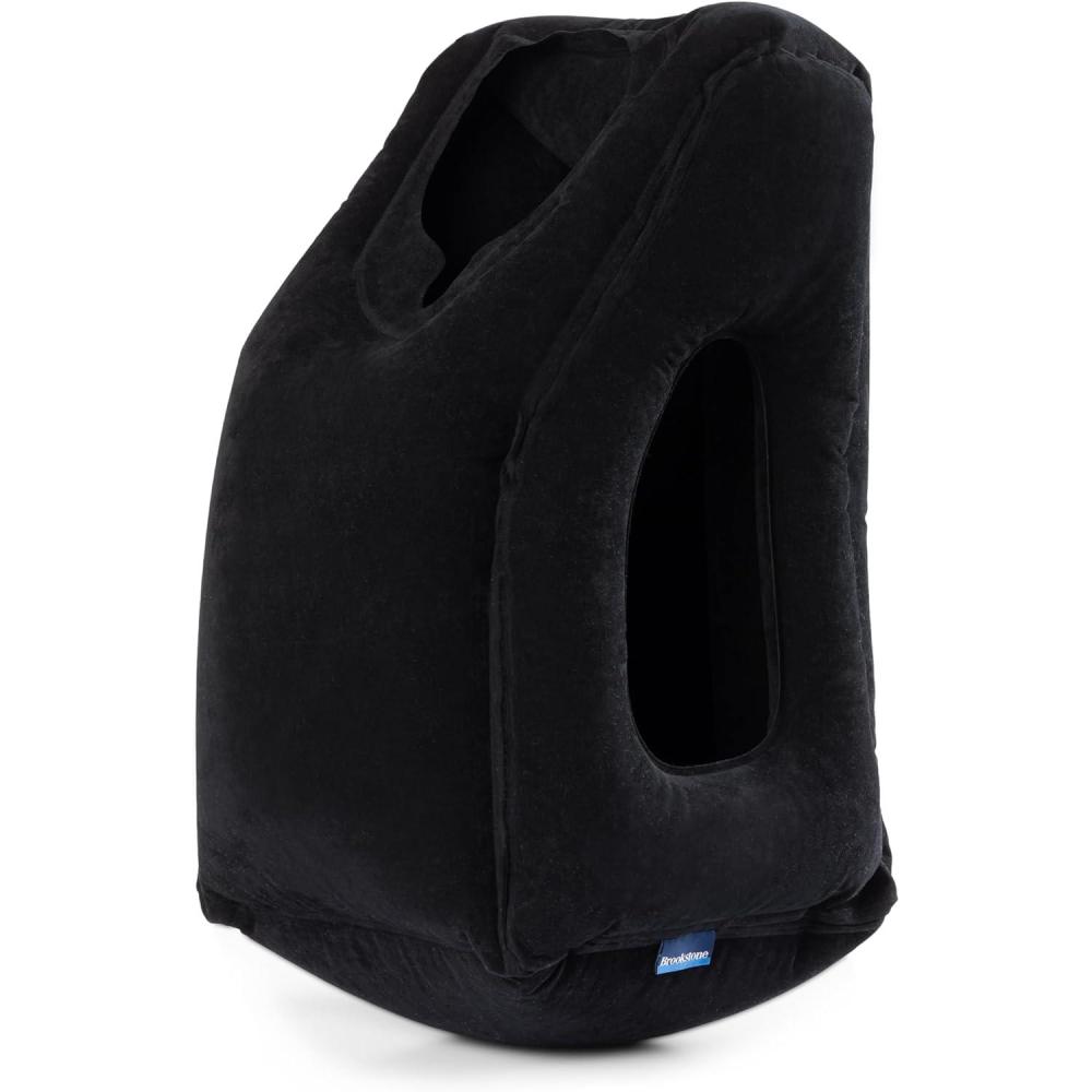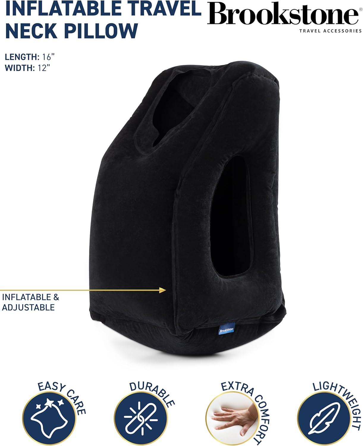 LIGHTWEIGHT AND PORTABLE FOR EASY TRAVEL: The Brookstone inflatable travel pillow is your ideal companion for all types of journeys. Compact and lightweight, it folds down easily into your carry-on or backpack. Whether you're looking for a neck pillow for travel, a car pillow for sleeping, or an inflatable neck pillow airplane, this design provides hassle-free portability without compromising on comfort during travel or outdoor adventures.