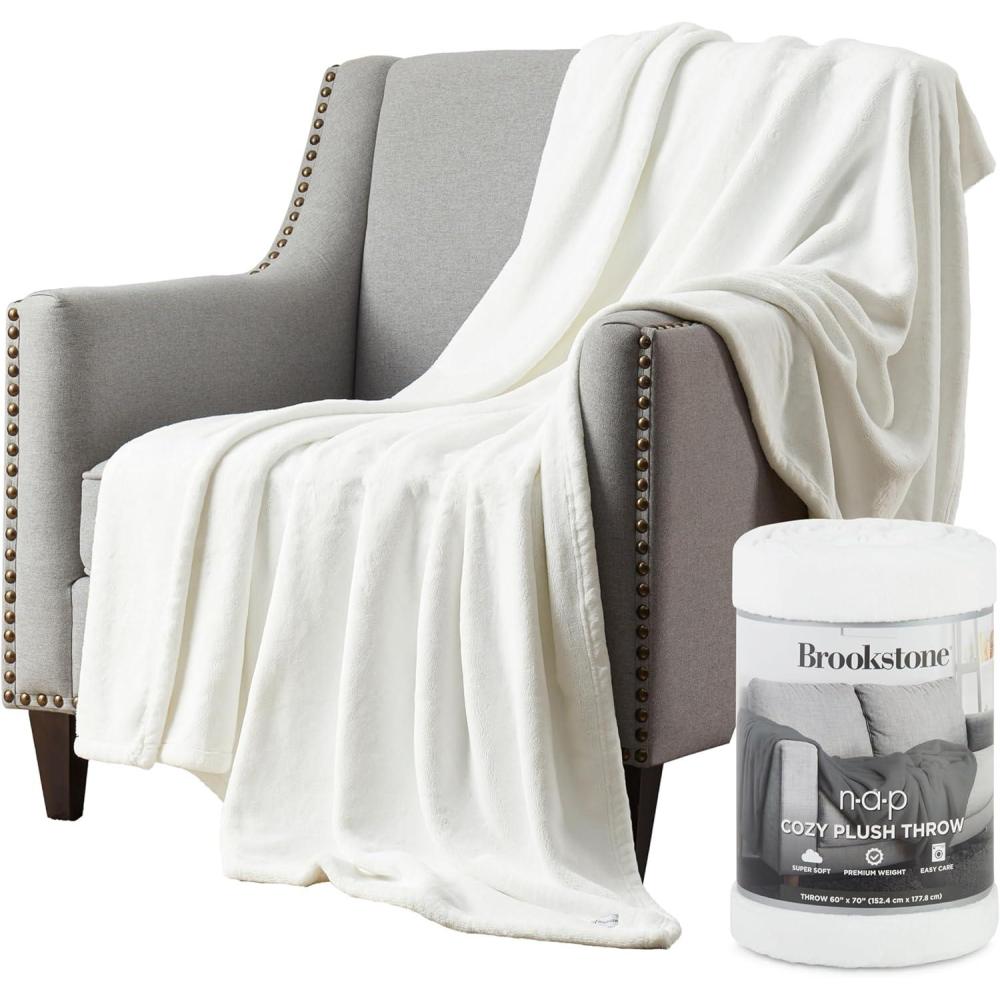 imageBrookstone Nap Plush Throw Blanket for Couch  Warm ampamp Super Soft Blanket with Unmatched Heavy Dense and UltraComfy Throw  Luxurious Drape Cozying Up on a Sofa Chair  BlushWhite